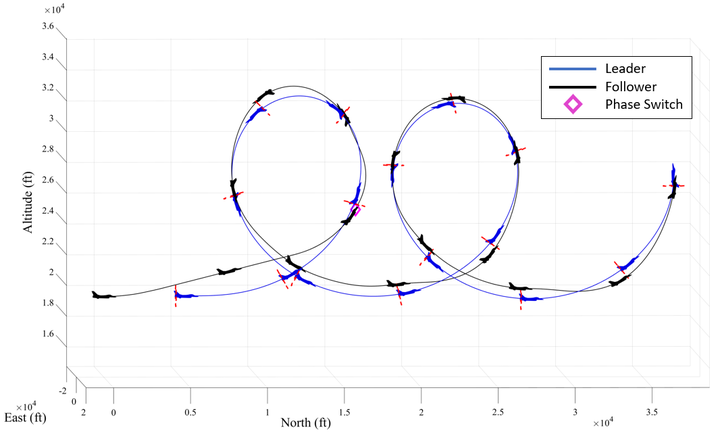 The specific objective of this paper is to develop a tool that calculates the optimal trajectory of the follower aircraft as it completes a formation rejoin, and then maintains the formation position, defined as a ring of points, until a fixed final time. The tool is designed to produce optimal trajectories for a variety of initial conditions and leader trajectories. Triple integrator dynamics are used to model the follower aircraft in three dimensions. Control is applied directly to the rate of acceleration. Both the follower’s and leader’s velocities and accelerations are bounded, as dictated by the aircraft’s performance envelope. Lastly, a path constraint is used to ensure the follower avoids the leader’s jet wash region. This optimal control problem is solved through numerical analysis using the direct orthogonal collocation solver GPOPS-II. Two leader trajectories are investigated, including a descending spiral and continuous vertical loops. Additionally, a study of the effect of various initial guesses is performed. All trajectories displayed a direct capture of the formation position, however changes in solver initial conditions demonstrate various behaviors in how the follower maintains the formation position. The developed tool has proven adequate to support future research in crafting real-time controllers capable of determining near-optimal trajectories.